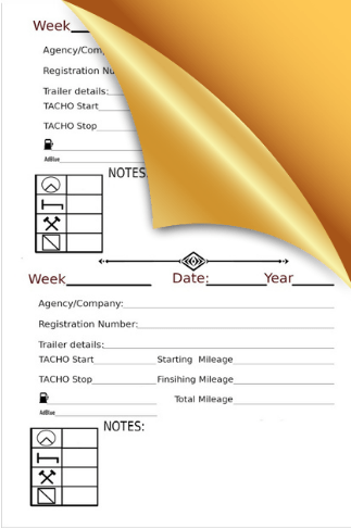 This 214 page book has 6 entries per week with a notation for you to include tax week, will store easily in your glove box, and contains all the information you need to keep track of.